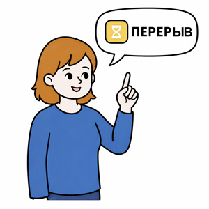 Скачайте бесплатную историю в картинках «Перерыв», которая помогает ребенку понять, что пауза во время занятия или игры — это время для короткого отдыха.
