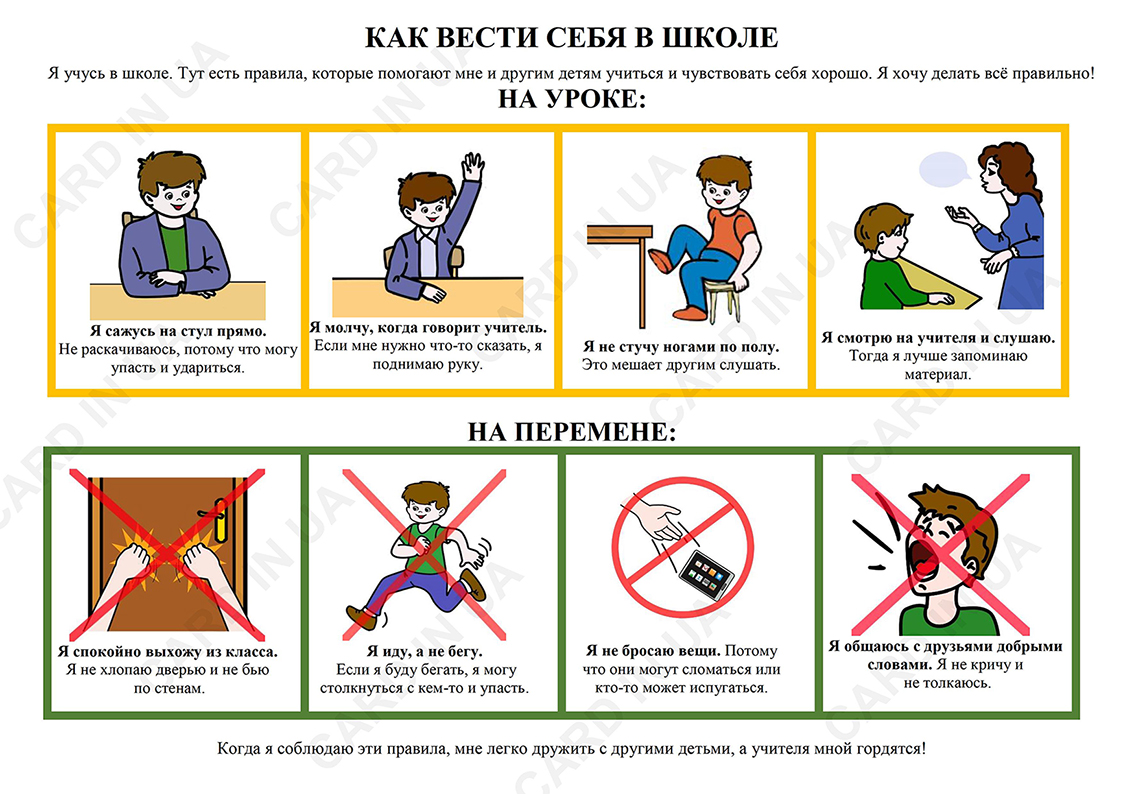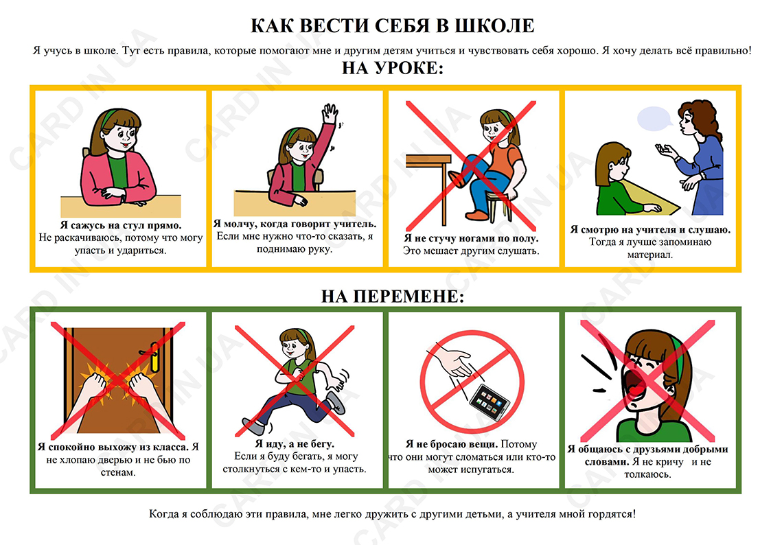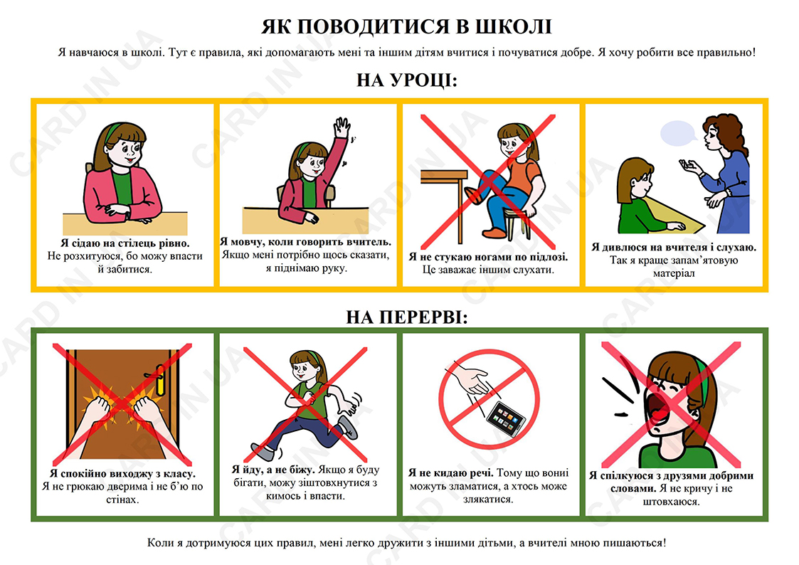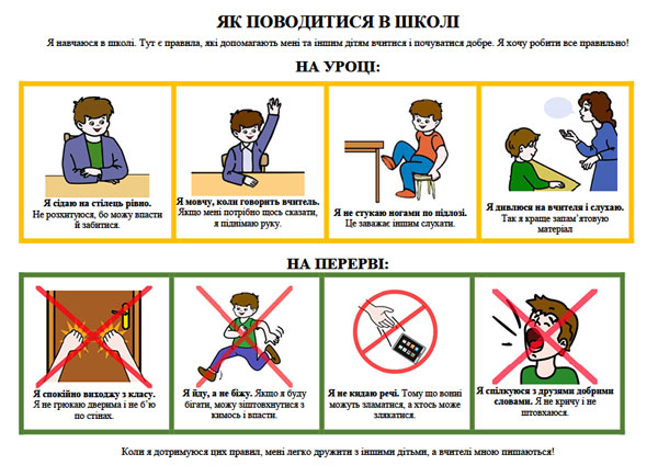 Ця історія допоможе дітям з РАС навчитися правильно поводитися в школі, щоб усім було комфортно і безпечно. Історія в малюнках допомогає запам’ятати прості правила, щоб ладнати з однокласниками та добре вчитися.