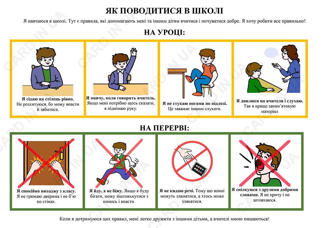 • Слухаємо вчителя мовчки, а якщо хочемо щось сказати – піднімаємо руку.